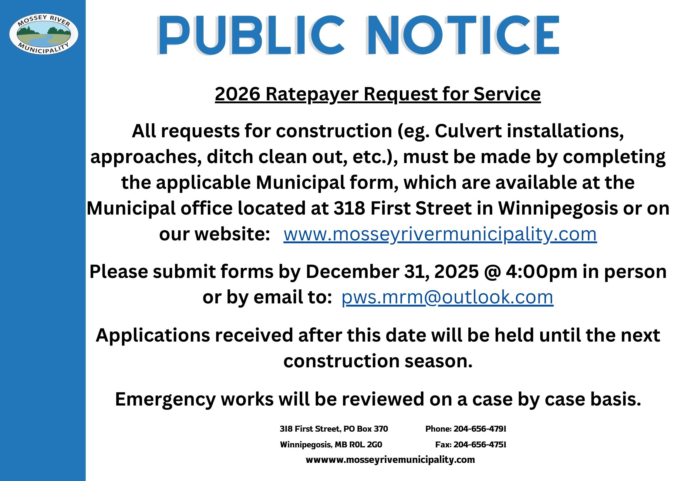 Public Notice- Rate payer request for service