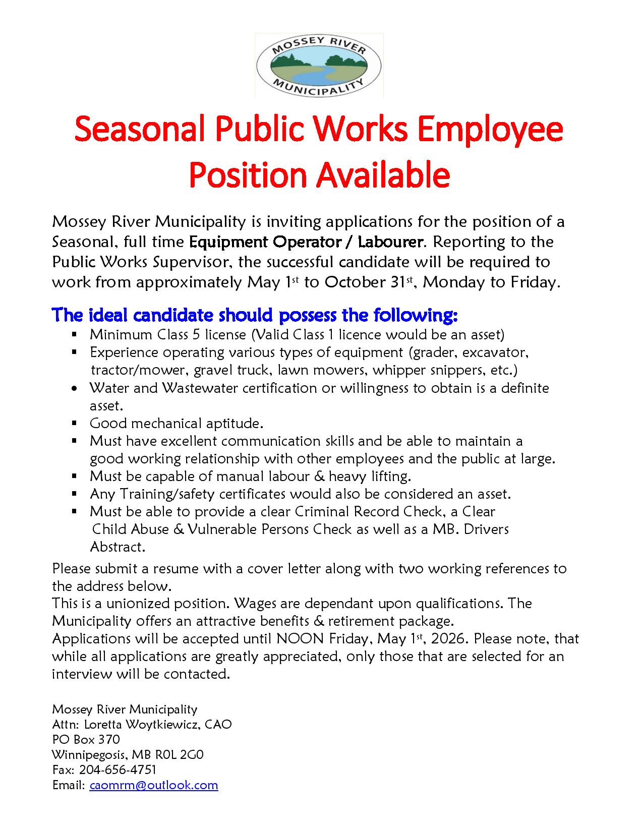 Public Works Seasonal Employee Ad